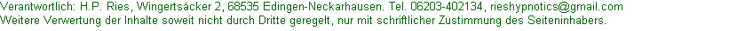 Hypnose , Praxis für moderne Hypnose , Mannheim , Heidelberg , 68535 Edingen-Neckarhausen , Tel. 06203-402134 , Heilpraktiker für Psychotherapie , Hans-Peter Ries ,