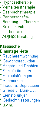 Erfahren Sie auf dieser Seite alles wesentliche über moderne Hypnosetherapie und weitere
